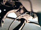 今回の作業その1。じろー号でタイヤと干渉していたリアのブレーキホースをタイラップを使って逃がした。